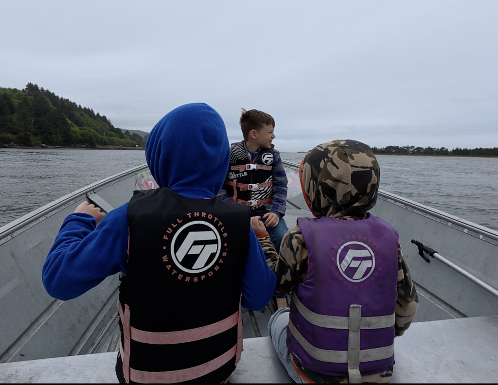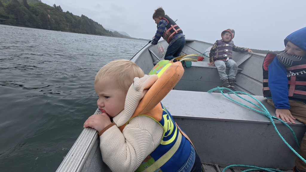 We rented a small motorboat, packed with our four kids (ages 8, 6, 3, and 1) — and set off down the Nehalem River to catch our lunch.